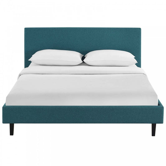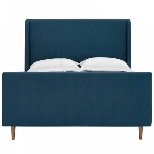 Aubree Queen Upholstered Fabric Sleigh Platform Bed, Azure