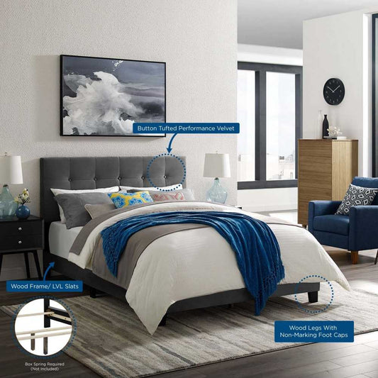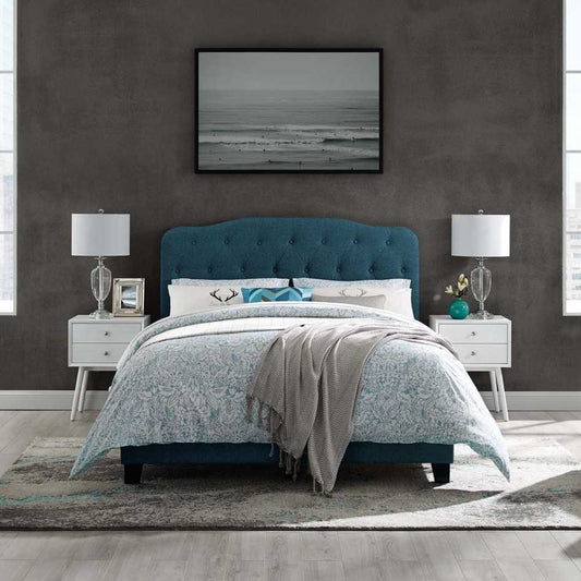 Amelia Queen Performance Velvet Bed, Sea Blue