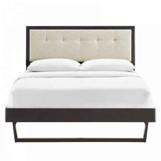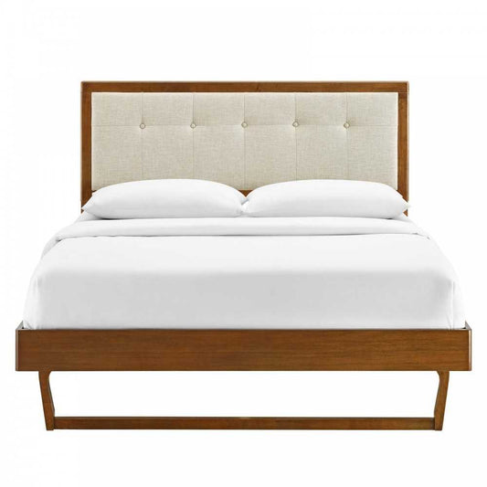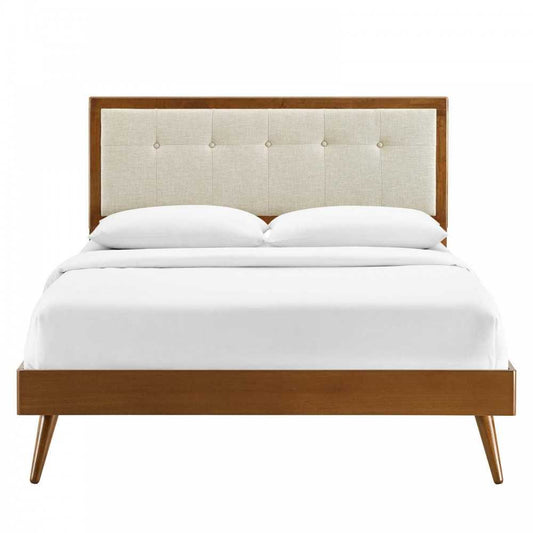 Willow Queen Wood Platform Bed With Splayed Legs, Walnut Beige