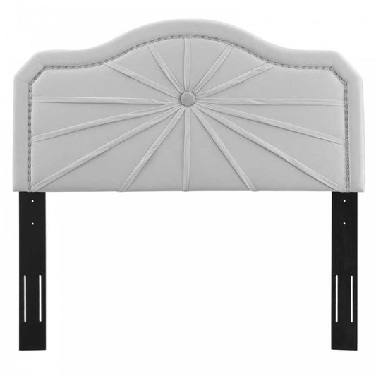 Kristin Pleated Performance Velvet Full/Queen Headboard, Light Gray