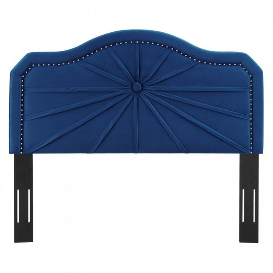 Kristin Pleated Performance Velvet Full/Queen Headboard, Navy