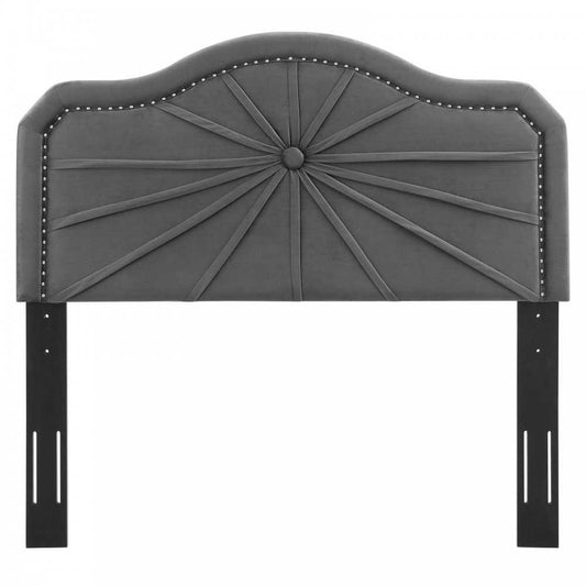 Kristin Pleated Performance Velvet Full/Queen Headboard, Charcoal