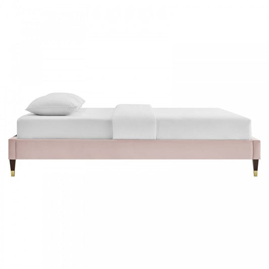 Harlow Twin Performance Velvet Platform Bed Frame, Pink