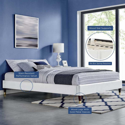 Harlow Queen Performance Velvet Platform Bed Frame, White