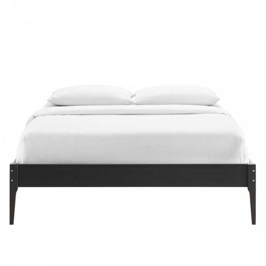 Kelsea Cane and Wood Queen Platform Bed With Angular Legs, Black