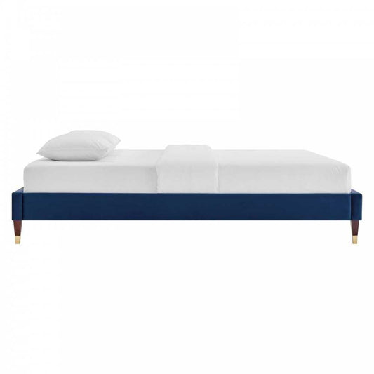 Harlow Queen Performance Velvet Platform Bed Frame, Navy