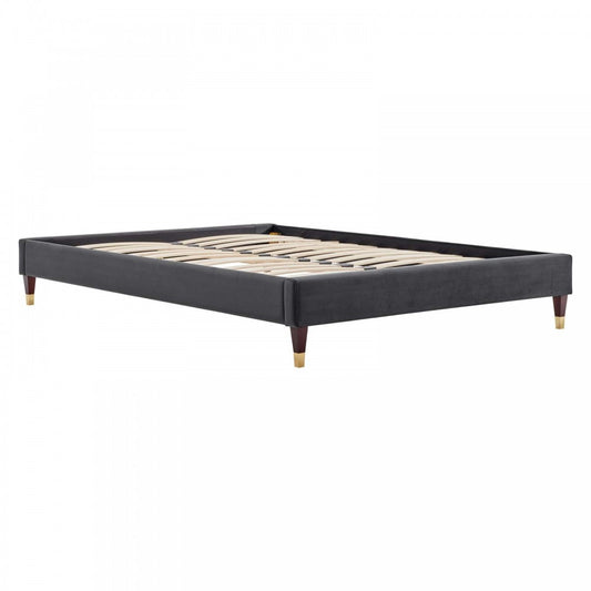 Harlow Queen Performance Velvet Platform Bed Frame, Charcoal