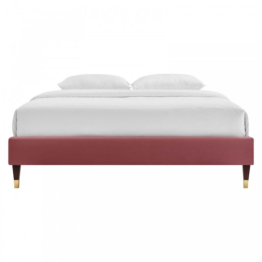 Harlow Queen Performance Velvet Platform Bed Frame, Dusty Rose