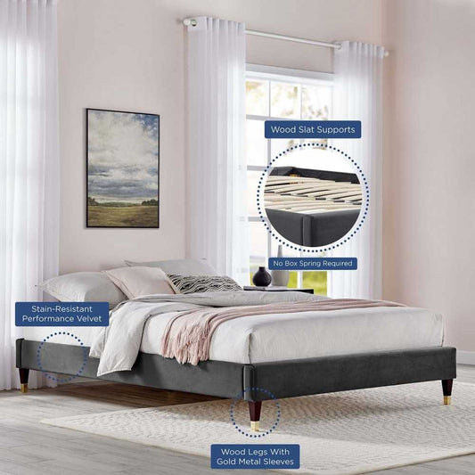 Harlow Queen Performance Velvet Platform Bed Frame, Light Gray