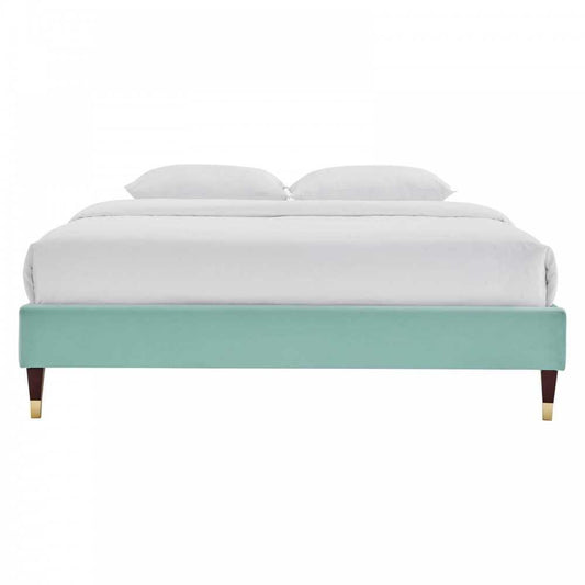 Harlow Queen Performance Velvet Platform Bed Frame, Mint