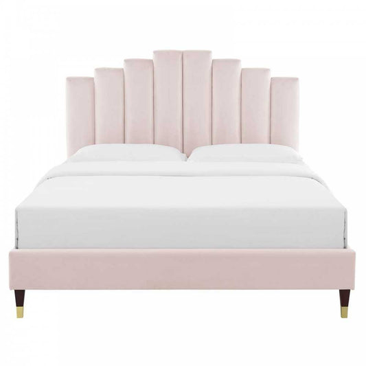 Elise Queen Performance Velvet Platform Bed, Pink, MOD-6691-PNK