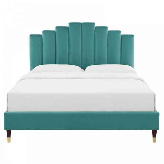 Elise Queen Performance Velvet Platform Bed, Teal, MOD-6693-TEA