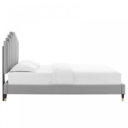 Elise Twin Performance Velvet Platform Bed, Light Gray, MOD-6873-LGR