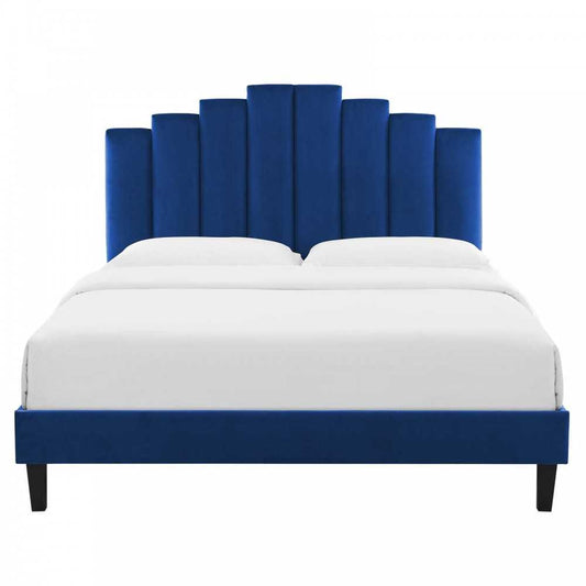 Elise Queen Performance Velvet Platform Bed, Navy, MOD-6691-NAV