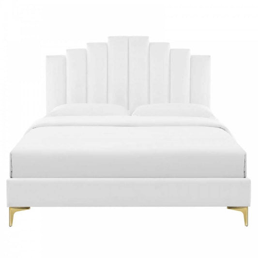 Elise King Performance Velvet Platform Bed, White, MOD-6881-WHI