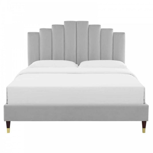Elise Queen Performance Velvet Platform Bed, Light Gray, MOD-6691-LGR