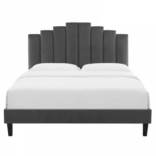 Elise Queen Performance Velvet Platform Bed, Charcoal, MOD-6691-CHA