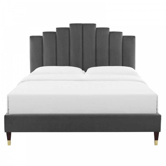 Elise Queen Performance Velvet Platform Bed, Charcoal, MOD-6692-CHA