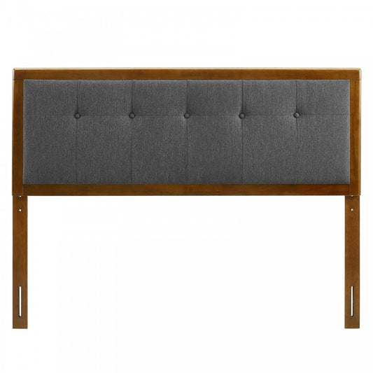 Draper Tufted King Fabric and Wood Headboard, Walnut Charcoal