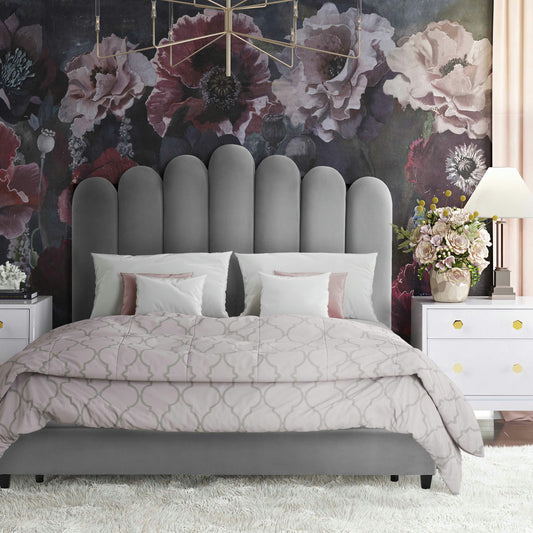 TOV Furniture Celine Grey Velvet Bed in Queen