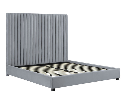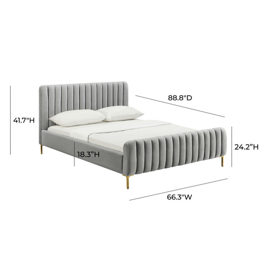TOV Furniture Carolina Grey Velvet Bed in Queen