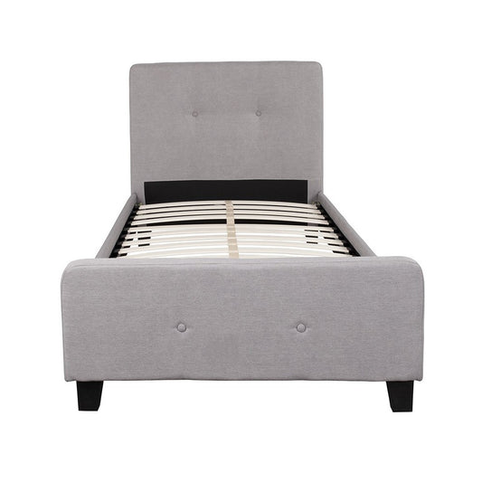 Tribeca Twin Size Tufted Upholstered Platform Bed in Light Gray Fabric