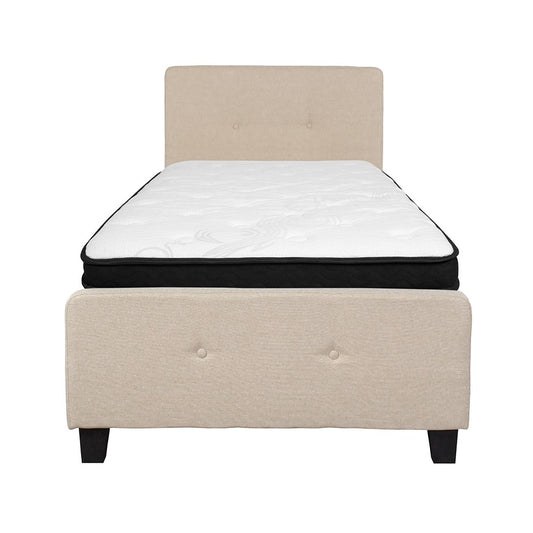 Tribeca Twin Size Tufted Upholstered Platform Bed in Beige Fabric with Memory Foam Mattress