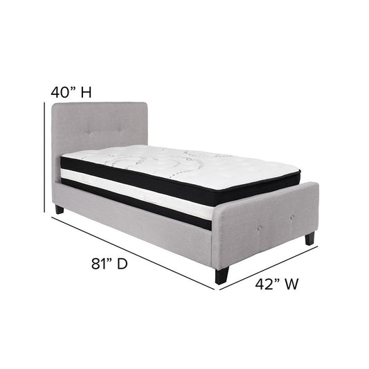 Tribeca Twin Size Tufted Upholstered Platform Bed in Light Gray Fabric with Memory Foam Mattress