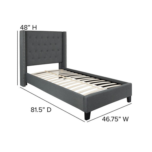 Riverdale Twin Size Tufted Upholstered Platform Bed in Dark Gray Fabric