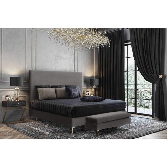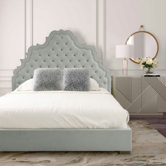 TOV Furniture Carolina Gray Velvet Bed in Queen