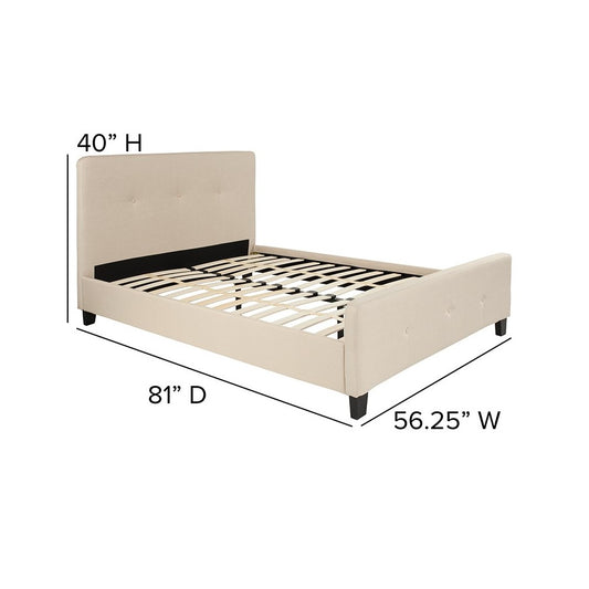 Tribeca Full Size Tufted Upholstered Platform Bed in Beige Fabric