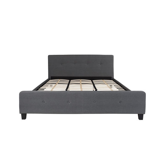 Tribeca King Size Tufted Upholstered Platform Bed in Dark Gray Fabric