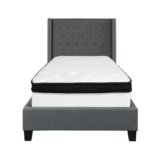 Riverdale Twin Size Tufted Upholstered Platform Bed in Dark Gray Fabric with Memory Foam Mattress