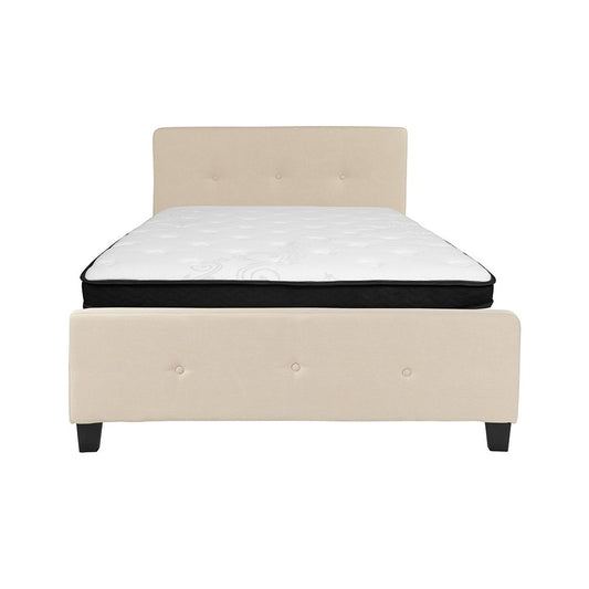 Tribeca Full Size Tufted Upholstered Platform Bed in Beige Fabric with Memory Foam Mattress