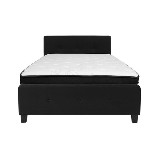 Tribeca Full Size Tufted Upholstered Platform Bed in Black Fabric with Memory Foam Mattress