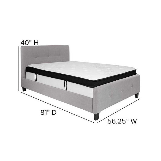 Tribeca Full Size Tufted Upholstered Platform Bed in Light Gray Fabric with Memory Foam Mattress