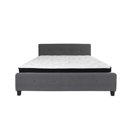 Tribeca King Size Tufted Upholstered Platform Bed in Dark Gray Fabric with Memory Foam Mattress