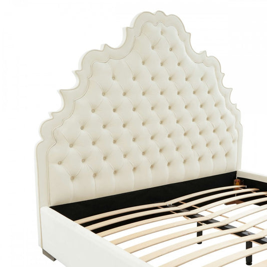 TOV Furniture Serenity Cream Velvet Bed in Queen