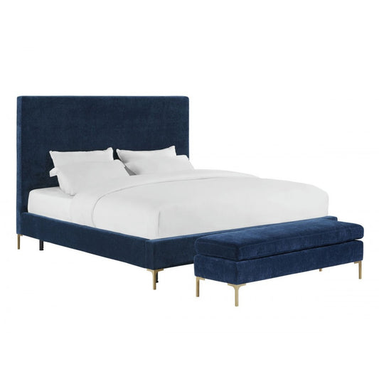 TOV Furniture Finley Blue Velvet Bed in King Size