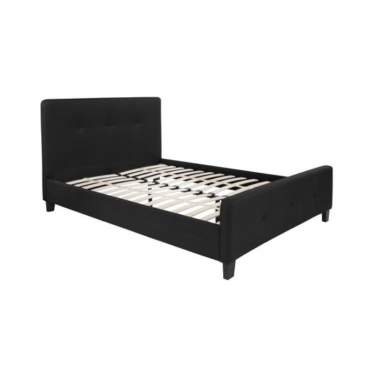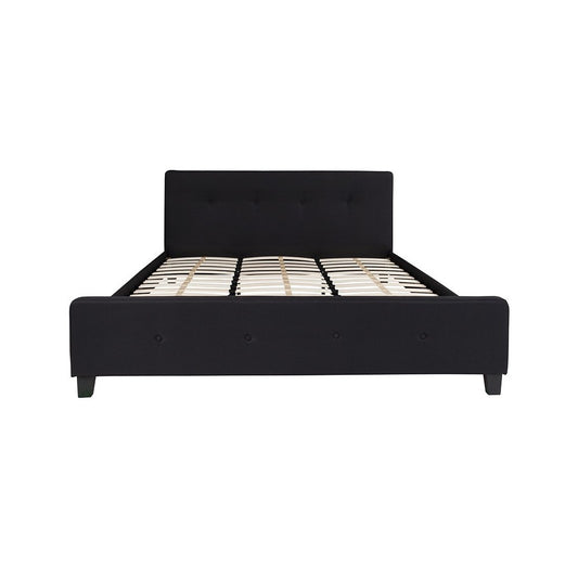 Tribeca Queen Size Tufted Upholstered Platform Bed in Black Fabric