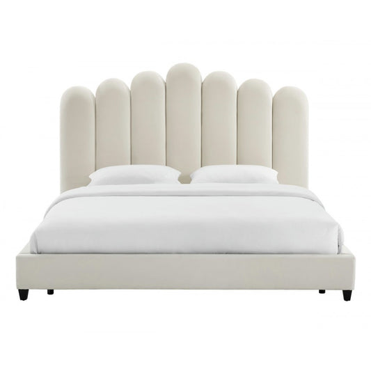 TOV Furniture Javan Cream Velvet Bed in Queen