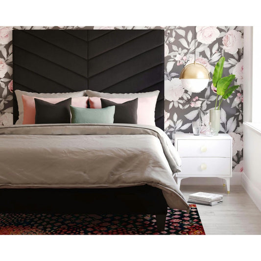 TOV Furniture Javan Black Velvet Bed in King
