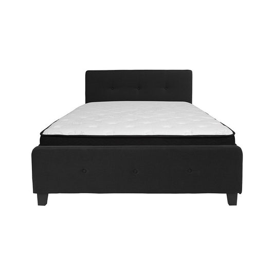 Tribeca Queen Size Tufted Upholstered Platform Bed in Black Fabric with Memory Foam Mattress