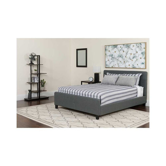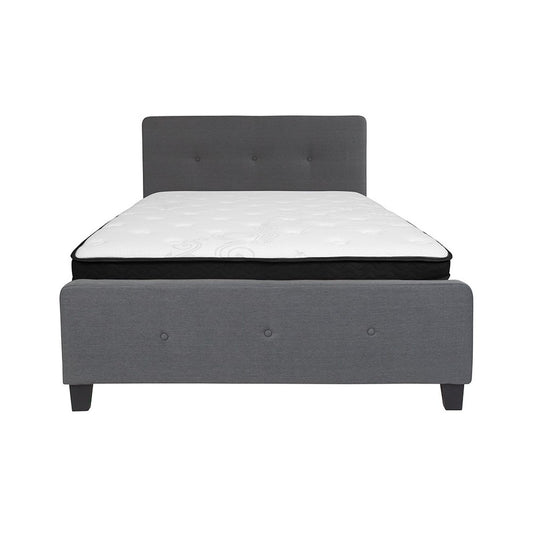 Tribeca Full Size Tufted Upholstered Platform Bed in Dark Gray Fabric with Memory Foam Mattress