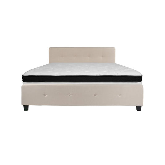 Tribeca King Size Tufted Upholstered Platform Bed in Beige Fabric with Memory Foam Mattress