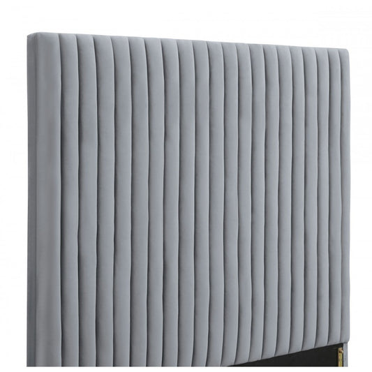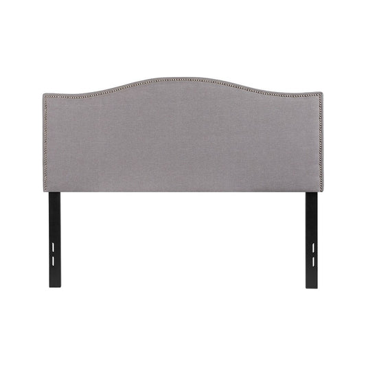 Lexington Upholstered Full Size Headboard with Accent Nail Trim in Light Gray Fabric