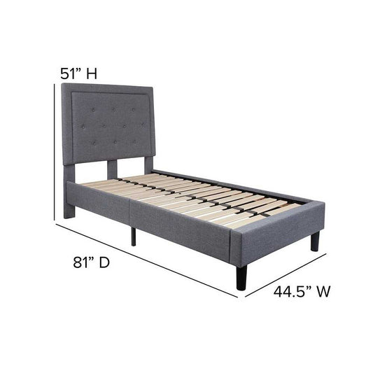 Roxbury Twin Size Tufted Upholstered Platform Bed in Light Gray Fabric