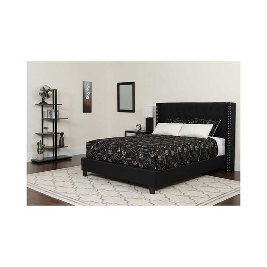 Riverdale Full Size Tufted Upholstered Platform Bed in Black Fabric with Pocket Spring Mattress