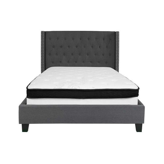 Riverdale Full Size Tufted Upholstered Platform Bed in Dark Gray Fabric with Memory Foam Mattress