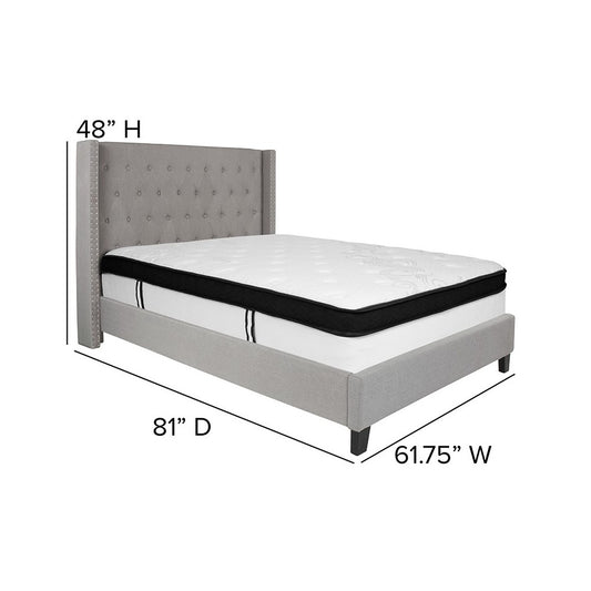Riverdale Full Size Tufted Upholstered Platform Bed in Light Gray Fabric with Memory Foam Mattress